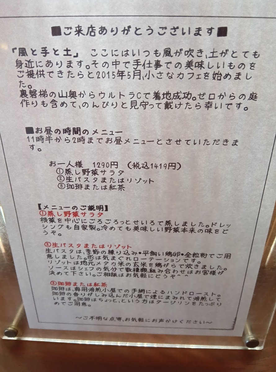 Kaze to Te to Tsuchi Menu